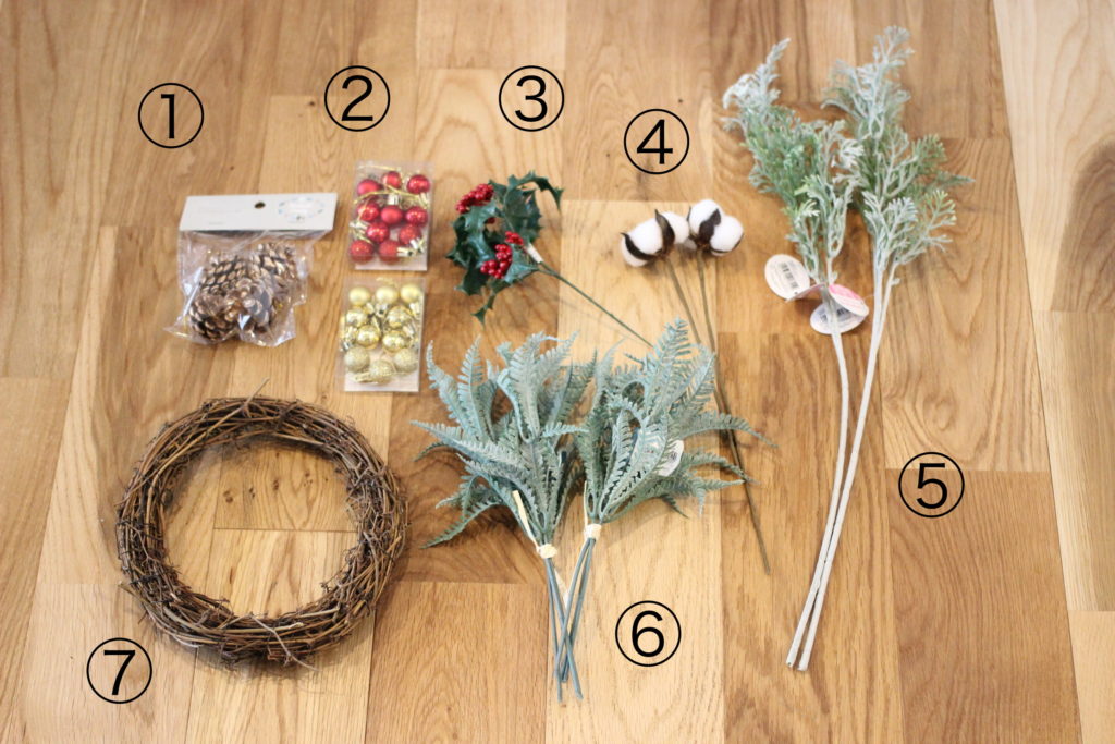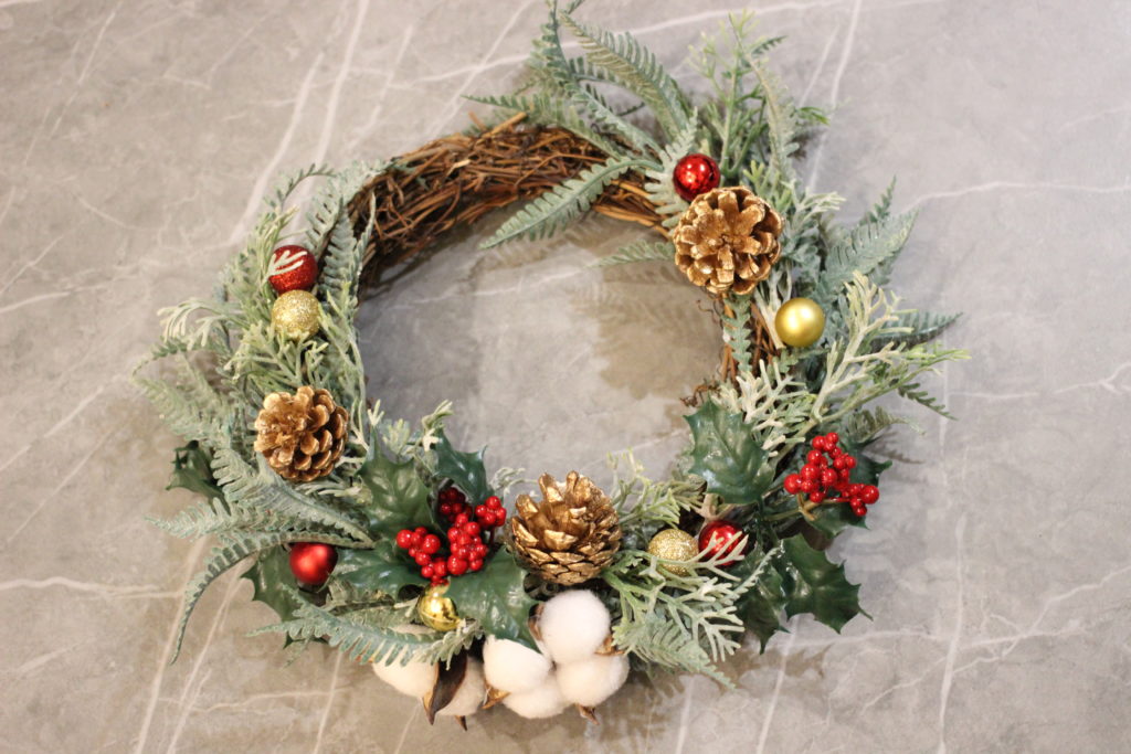毎年特別なことはしないのですが、今年はクリスマスリースを作ってみたいという夫の希望により、クリスマスリースを自作してみました